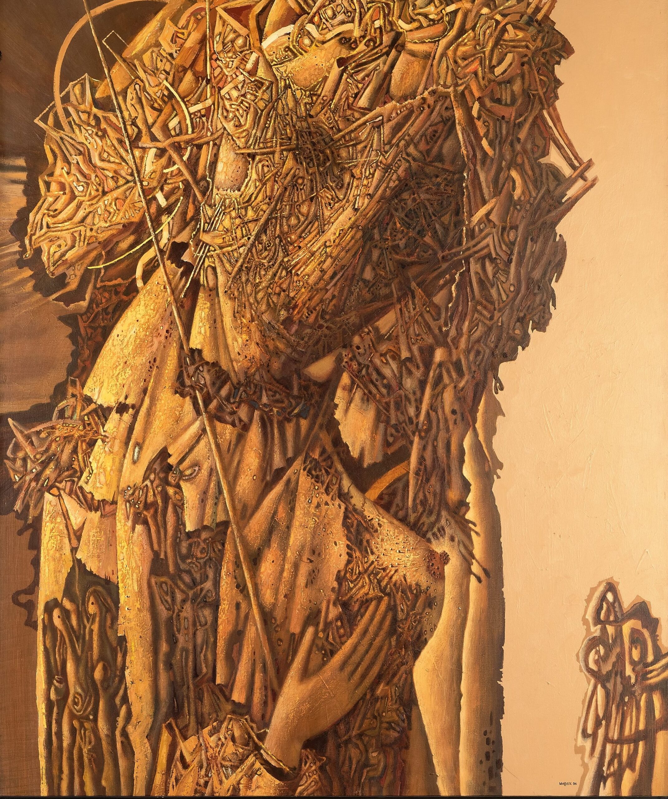 - Линия как структура и ритм. В плентанизме каждая линия имеет значение — она создает текстуру, объем, свет. Когда смотришь на картину Марчука, создается впечатление, будто миллионы нитей вплетены в единое полотно.